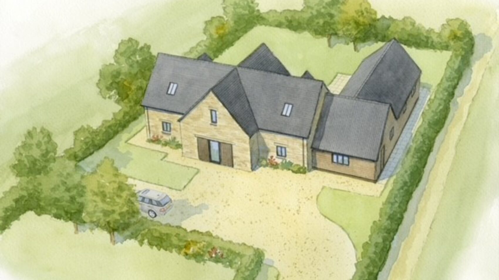 Located on the edge of the sought-after market town of Chipping Campden, this exclusive new home offers the rare opportunity to enjoy village charm and community spirit with easy access to artisan shops, acclaimed dining, and outstanding schools. The elegant natural stone elevations, oak-framed detailing, and expansive glazing capture the essence of the surrounding countryside while flooding the interior with light.